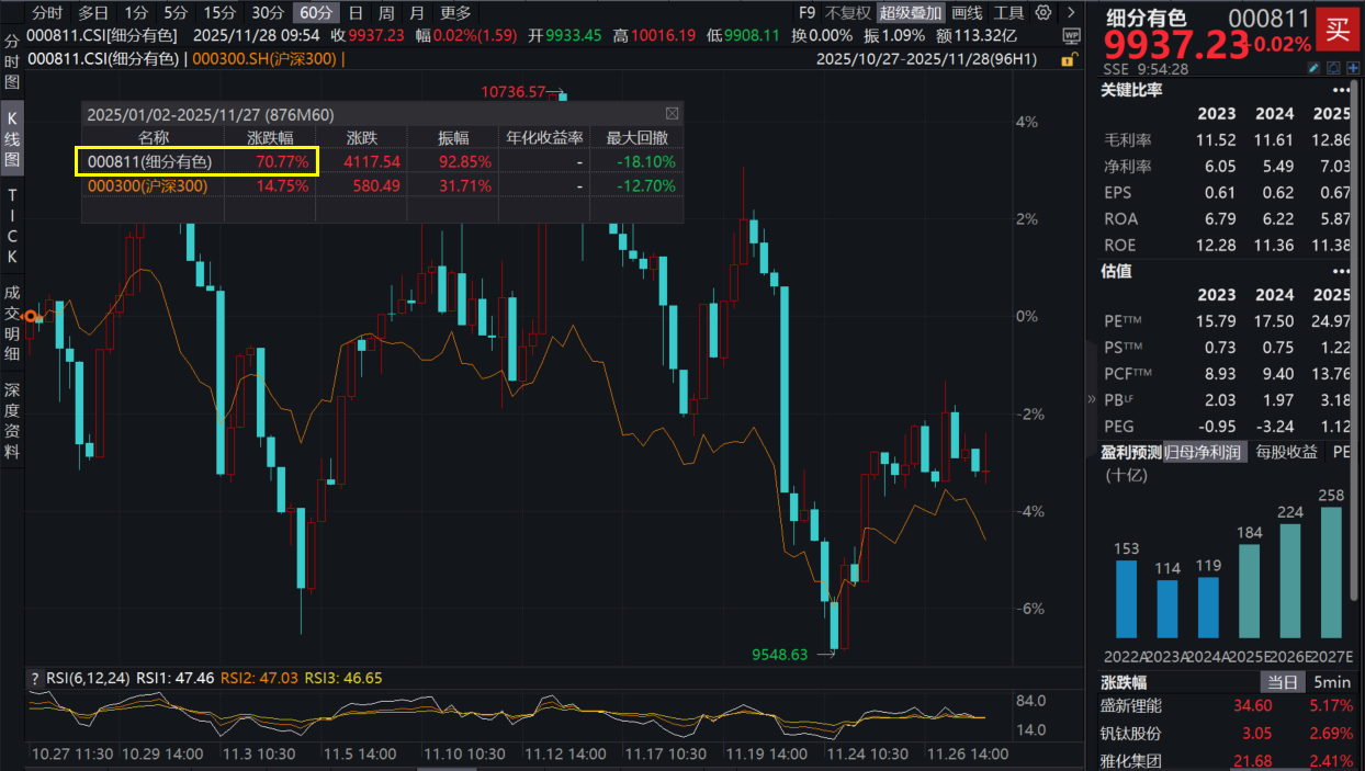 据了解,主流的有色50ETF(159652)标的指数年内涨幅更是达到70.77%,在全市场行业指数中大幅领先!