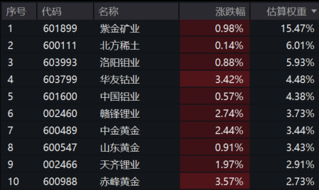 【有色50ETF(159652)标的指数成分股】