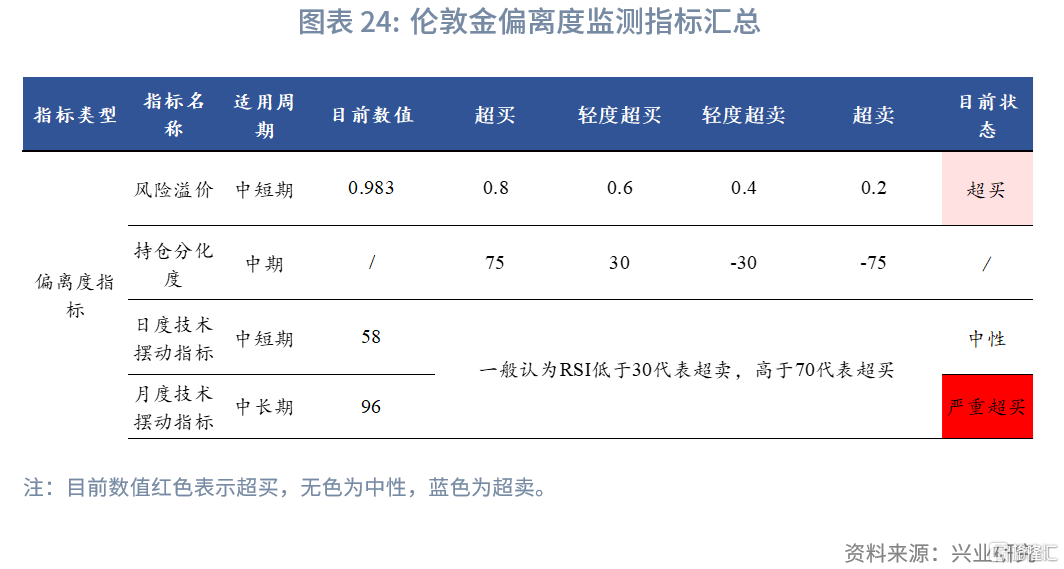 根据前文的分析,伦敦金价格的偏离度监测指标汇总如下: