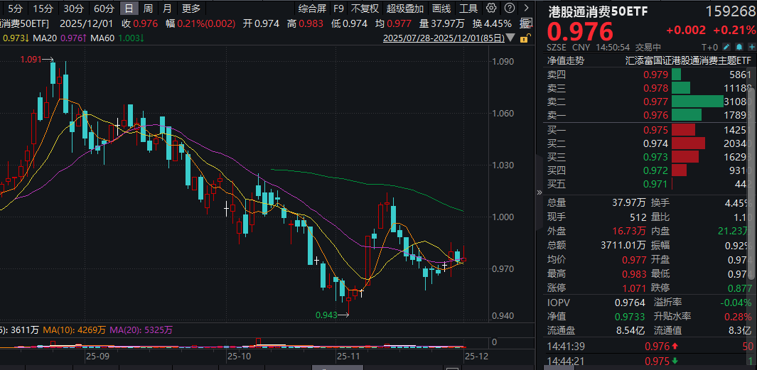 风险提示:基金有风险,投资需谨慎。投资人应当阅读《基金合同》《招募说明书》《产品资料概要》等法律文件,了解基金的风险收益特征,特别是特有风险,并根据自身投资目的、投资经验、资产状况等判断是否和自身风险承受能力相适应。基金管理人承诺以诚实信用、谨慎尽责的原则管理和运用基金资产,但不保证基金一定盈利或本金不受损失。上述产品均属于中等风险等级(R3)产品,适合经客户风险等级测评后结果为平衡型(C3)及以上的投资者。文中提及个股仅为指数成份股客观展示列举,本文出现信息只作为参考,投资人须对任何自主决定的投资行为负责。本文中的任何观点、分析及预测不构成对阅读者任何形式的投资建议。港股通消费50ETF(159268)的基金投资范围包括港股,会面临因投资环境、投资标的、市场制度以及交易规则等差异带来的特有风险。
