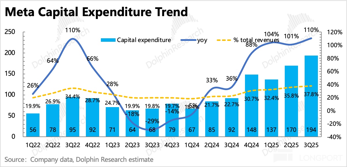 但考虑到当下的算力竞争环境,假设 Meta 部分采用 TPU,一如消息传闻那样,2026 年先租谷歌的 TPU 云服务,2027 年直接买 TPU 芯片部署到自家数据中心,都会引起短期资本开支有较大的变化。