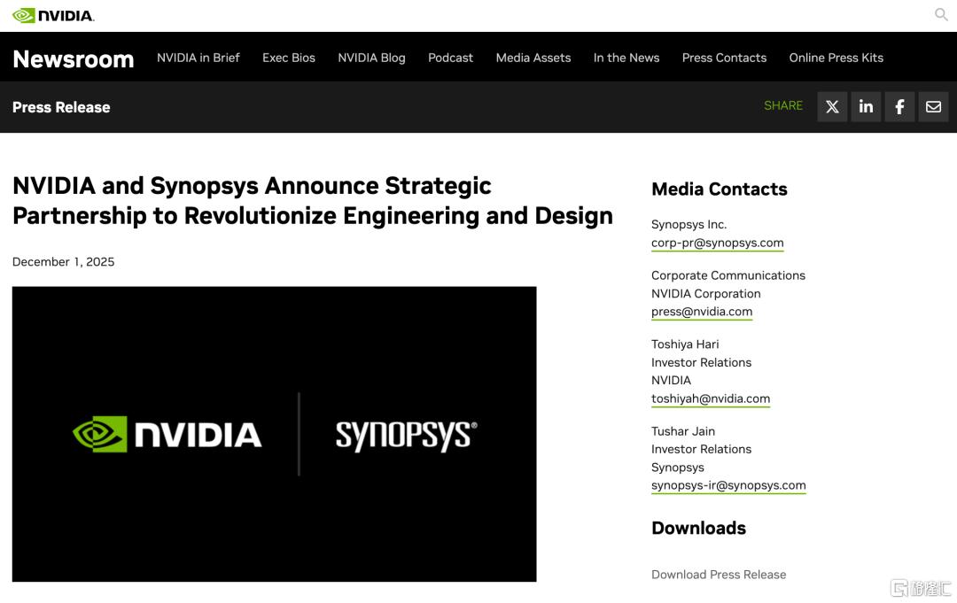 此次投资也让英伟达成为新思科技的第七大股东,持股比例为2.6%。