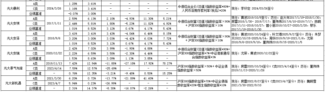 其中,光大中高等级A、光大增利A和光大添益A三只产品均由公司总经理助理、固收多策略投资部总监黄波管理。作为拥有13年证券从业经验、超9年投资管理经验的固收老将,黄波的职业生涯覆盖年金、专户和公募,是一名具备多品类投资管理经验的固收多策略投资老将,具备优秀的多策略组合投资和回撤控制能力,力争持续为投资者打造“暖心收益”。