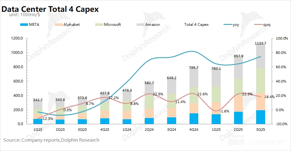 亚马逊本季度资本开支达到了 351 亿美元,环增接近 30 亿美元,创单季度历史新高。如果亚马逊后续再次提升资本投入的展望,也将给公司 AI 业务的增长带来信心。
