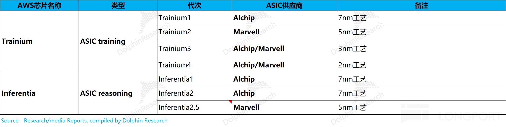 在定制 ASIC 方面,亚马逊的重心侧重在训练 AI 模型的 Trainium 芯片。结合公司及行业信息看,亚马逊接下来的 Trainium3 和 Trainium4 依然是在 Marvell 和 Alchip 两家中同时推进,公司还将面临着来自台厂的竞争。