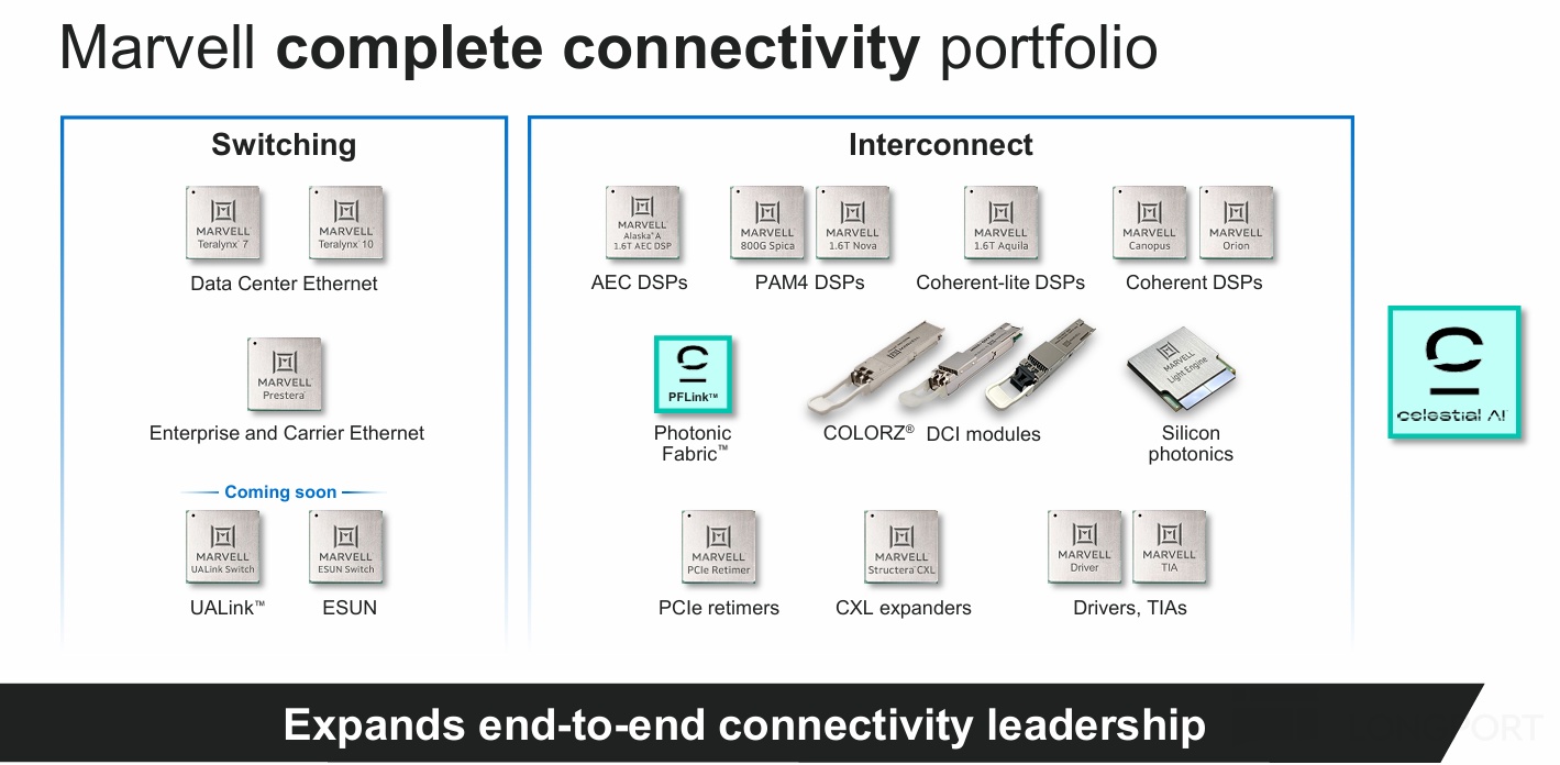 正是由于公司处在 AI 芯片赛道相对边缘的位置,公司宣布了将对 Celestial AI 进行收购,从而进一步增强公司的竞争力。在完成收购后,Marvell 也将成为覆盖 “scale out scale up” 全场景的厂商。