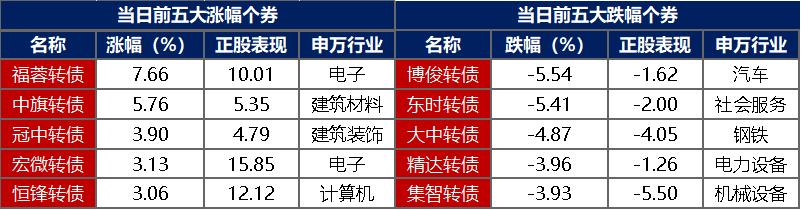 【转债市场主要指数集体跟跌】 12月2日,转债市场跟随权益市场有所下行,当日中证转债、上证转债、深证转债分别收跌0.52%、0.54%、0.46%。当日,转债市场成交额468.56亿元,较前一交易日缩量84.73亿元。转债市场大多下跌,401支转债中,54支收涨,344支下跌,13支持平。当日上涨个券中,福蓉转债涨超7%,中旗转债涨超5%;下跌个券中,博俊转债、东时转债跌逾5%。