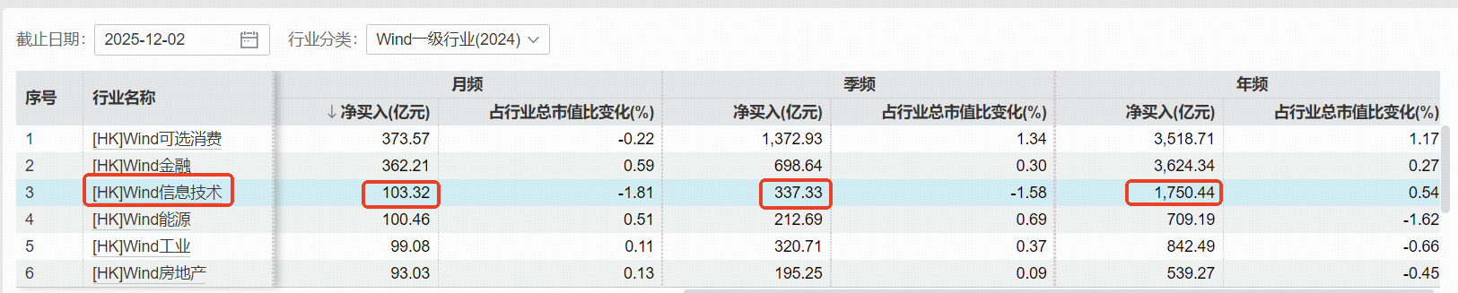 从行业资金流向来看,南向资金月频、季频、年频净买入前三的行业分别为可选消费、金融、信息技术