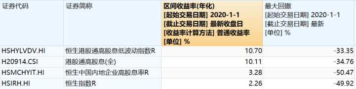 从历史表现来看,自2020年初以来,恒生港股通⾼股息低波动R(全收益指数)累涨80.85%,区间年化涨幅10.70%,最大回撤-33.35%,风险收益比优于同类港股红利类指数。