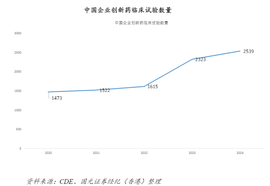 中国企业开展创新药临床试验数量从2020年的1473项,增长到2024年的2539项,年复合增长率达15%以上,呈持续上升趋势。创新药临床试验是指1类新药的临床试验,不包括仿制药、生物类似药的临床试验。2024年数据创新药临床试验登记数量达2539项,占当年药物临床试验登记总量 (4900项) 的51.8%,首次超过半数,充分说明中国临床试验的质量和数量都得到大幅提升,这些创新药临床试验的大幅增长,为未来出海BD的持续高增长奠定了坚实的基础