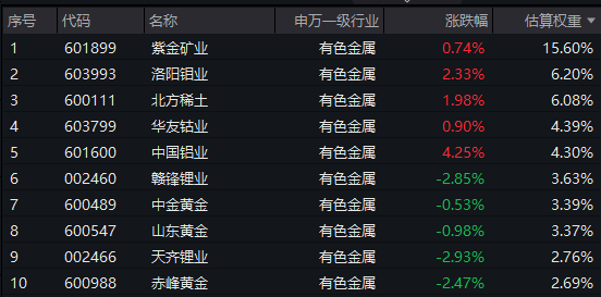 【有色50ETF(159652)标的指数前十大成分股】