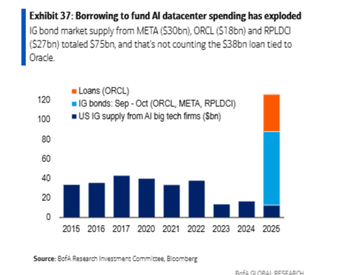科技行业的债券发行现已达到一年前的10倍,超级算力企业的资本密集度也从2012年的13%跃升至如今的64%。现在这些企业需要把营收中很大一部分投入到硬件、能源、电力、数据中心等资本性支出上。