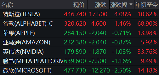 科技股表现分化明显。大型科技股涨跌不一,特斯拉涨超4%,谷歌涨超1%,微软跌超2%,Meta、英伟达跌超1%。微软股价此前因"AI产品销售预期下调"传闻一度跳水,但公司随后否认相关报道,跌幅有所收窄。