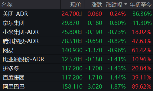 中概股多数走弱,纳斯达克中国金龙指数收跌1.38%。阿里巴巴跌1.89%,蔚来跌4.77%,小鹏汽车跌4.02%,理想汽车跌3.65%,哔哩哔哩跌2.36%,阿特斯太阳能跌超9%。市场分析认为,近期中概股疲软与美国经济数据不及预期、美联储降息预期升温以及全球流动性环境变化密切相关。