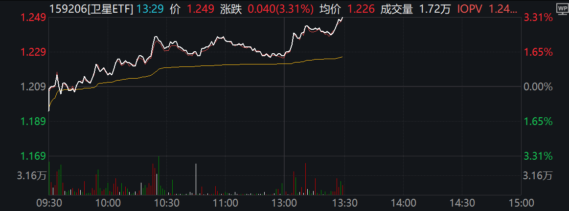 卫星互联网发展势不可挡,卫星ETF(159206)午后涨超3%,成分股中国卫星、航天电子涨停!
