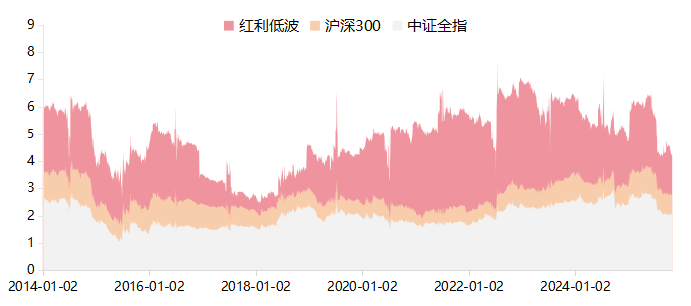 图:红利低波、沪深300、中证全指指数股息率(单位:%)