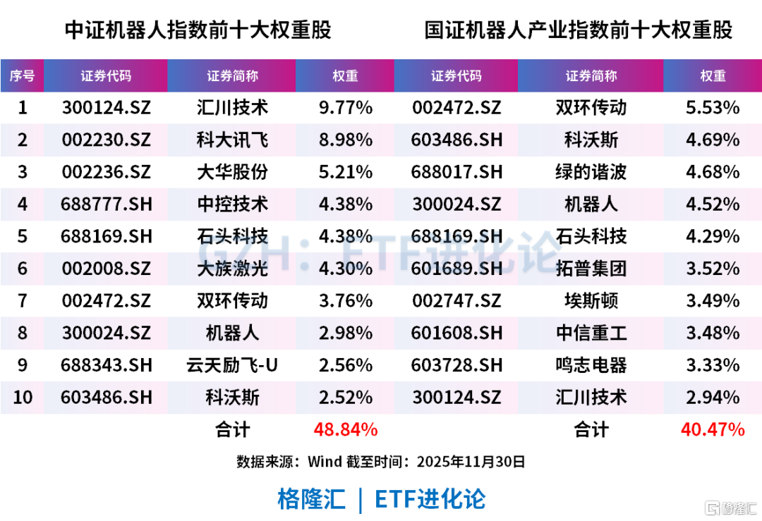 从两者指数编制方案来看,中证机器人指数是全产业链覆盖,范围更广,机器人产业指数聚焦机器人本体和核心零部件。