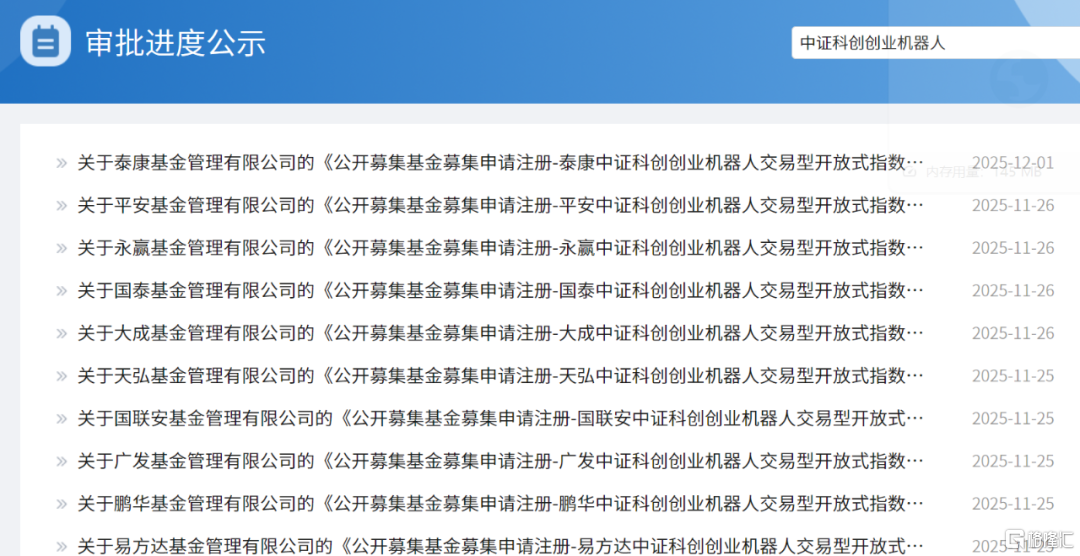 此外,机器人主题ETF又即将迎来新品种,11月24日至今,华夏基金、易方达基金、广发基金、华泰柏瑞基金、南方基金等合计13家基金公司集体上报了中证科创创业机器人ETF,这是首批科创创业机器人ETF。