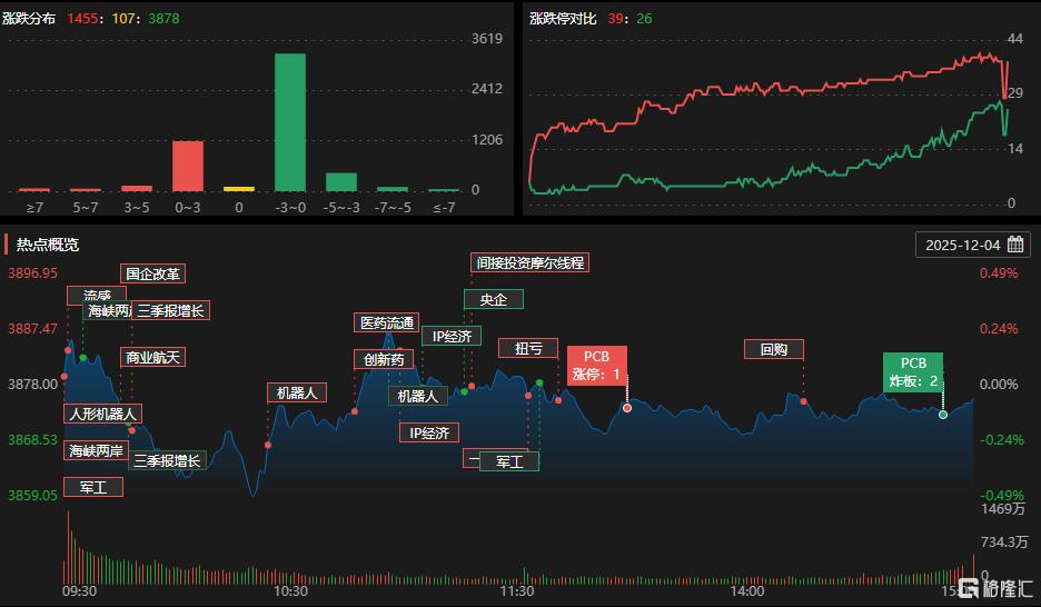 12月4日,A股涨跌不一,全市场成交额1.56万亿元,较前一交易日缩量1219亿元。