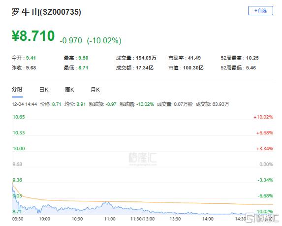 罗牛山:今日跌停,换手率16.92%,成交量194.69万手,成交额17.34亿元。龙虎榜数据显示,机构合计净卖出3949.85万元,北向资金合计净买入343.07万元。