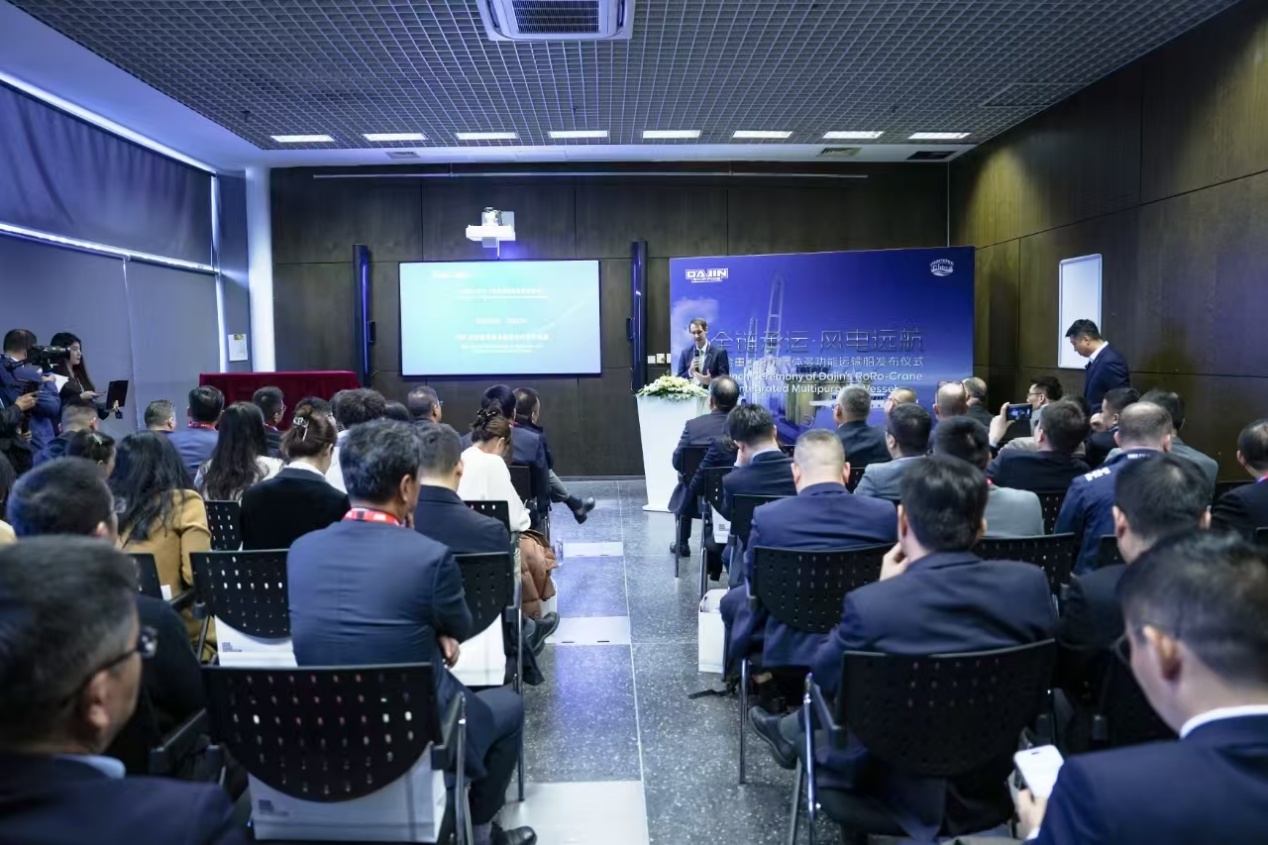 2025年12月2日,上海国际海事展期间,大金重工“全链承运・风电远航”滚吊一体多功能运输船全球首发仪式圆满举办。上海市船舶与海洋工程学会、中国船舶及海洋工程设计研究院、DNV、ABS、BV等行业协会、科研院所、权威机构及产业链合作伙伴代表齐聚现场,共同见证这一风电物流领域的突破性事件。该首创船型的推出,将为风电装备跨洋运输提供专业化解决方案,有力支撑中国风电产业链全球化发展。