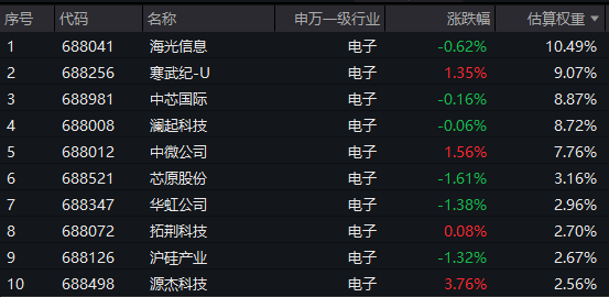 【科创芯片50ETF(588750)标的指数前十大成分股】