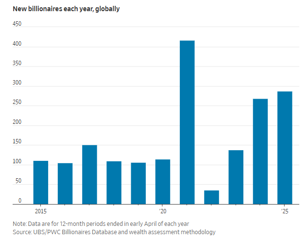瑞银发布的新研究显示,2025年全球亿万富豪人数创下新高,部分原因在于科技公司估值飙升以及股价上涨。