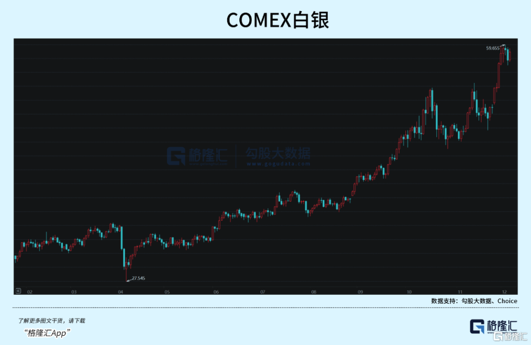 尤其是最近一个多月,更是一柱擎天,逼近60美元/盎司。