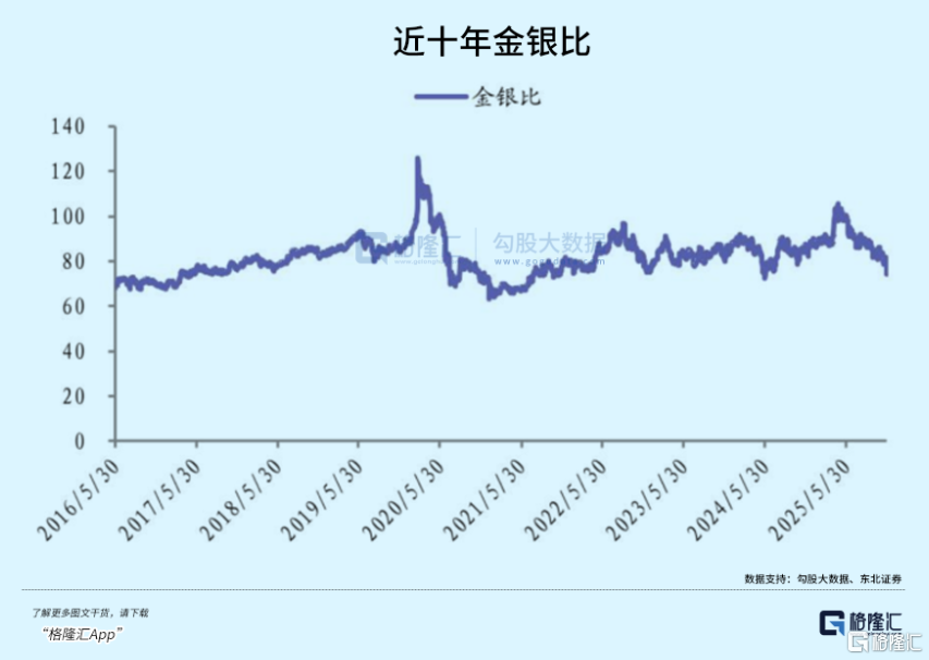 不过随着时间的推移,目前的金银比为72左右,还是回到了平均区间。