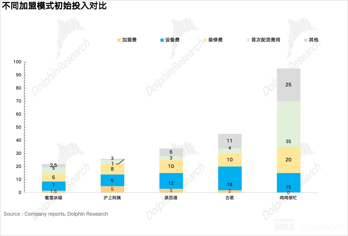 海豚君在《“现饮界拼多多” 蜜雪冰城 :“雪王” 封王底气何在?》说过加盟商在选择品牌加盟时无非考虑三个因素:前期投入(资本门槛),回本周期(ROI)以及品牌自身的吸引力(成功保障)。