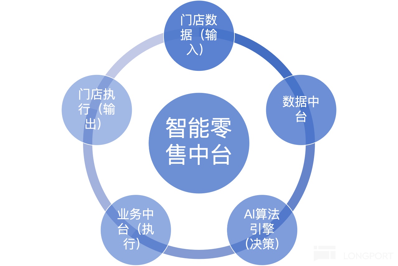 对于后端环节,采购上,业务中台的订单管理系统(OMS)会根据 AI 算法产出的补货清单对同一 SKU 进行跨门店、跨区域快速、批量汇总并自动聚合成大批量的采购订单,实现对供应商的最大议价权。