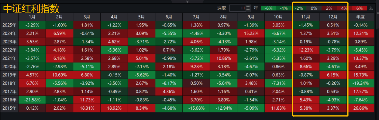 另一方面,12月末至明年一季度末是险资传统重要配置窗口期,红利资产有望成为长线资金配置的重点。