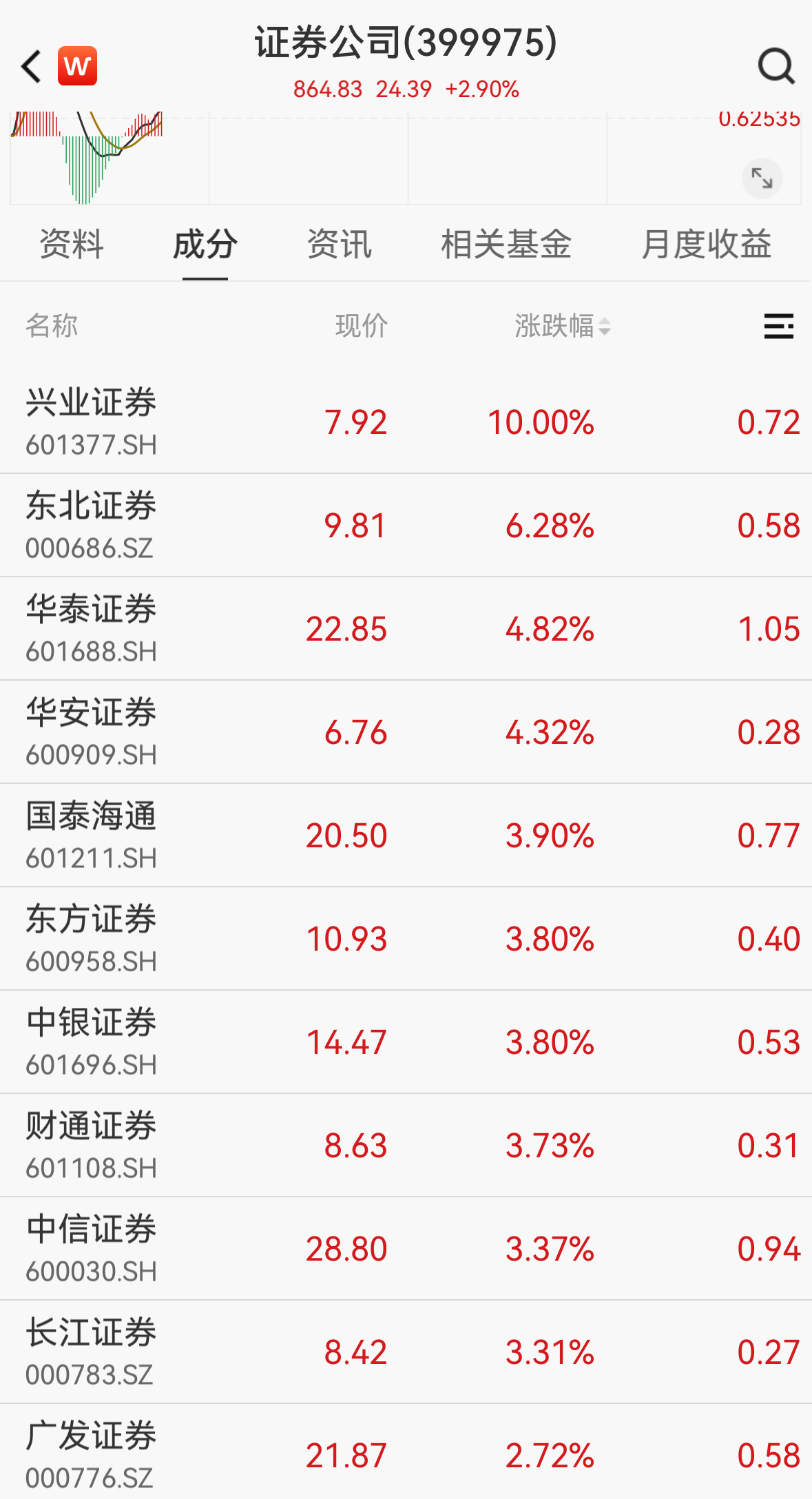 【证券ETF龙头(560090)标的指数成分股涨幅榜】