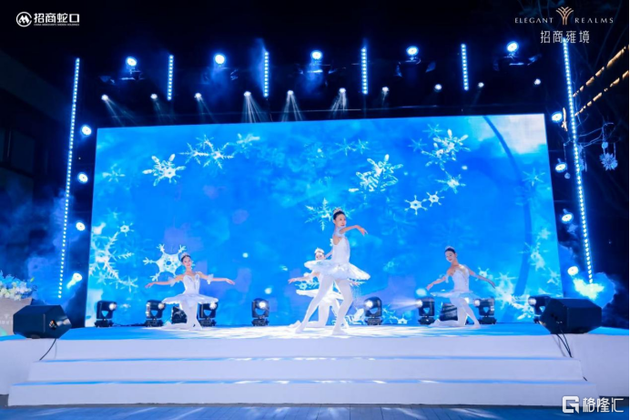 舞台上,冰雪芭蕾舞剧优雅上演,舞者足尖流转,以极致肢体语言诠释艺术与生活交融的浪漫想象。穹顶之上,流光漫舞,不仅营造出梦幻氛围,更将前海澎湃发展的时代情绪与招商雍境的产品温度紧密相连。