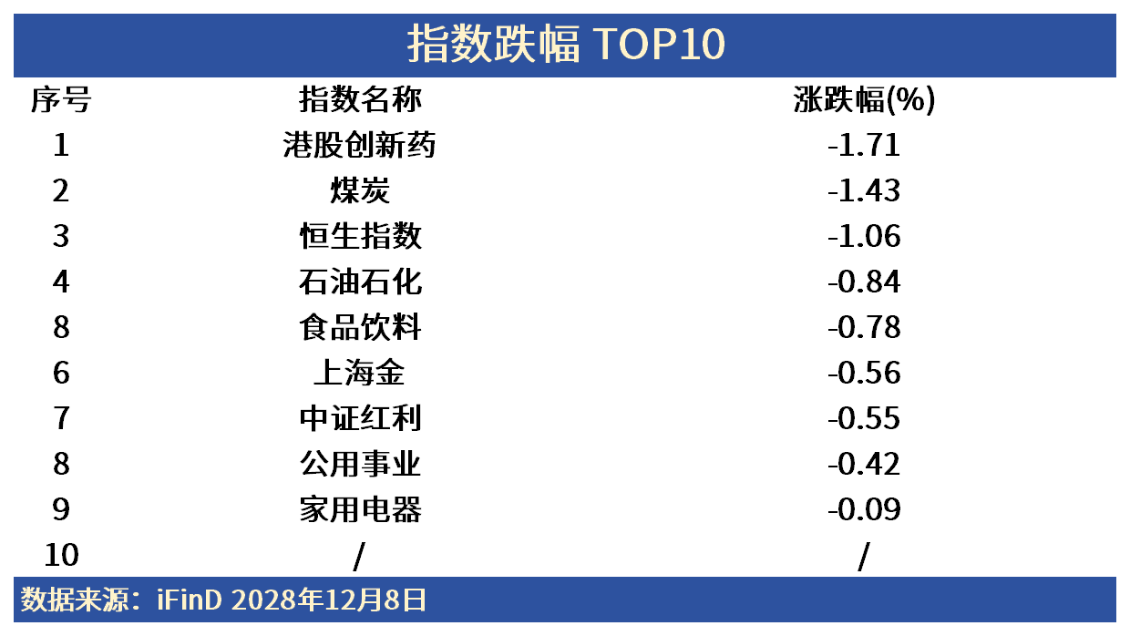 截至2025年12月8日A股收盘,煤炭回调1.43%,华阳股份、新集能源跌幅居前。中证红利回调0.55%,鄂尔多斯、中谷物流跌幅居前。