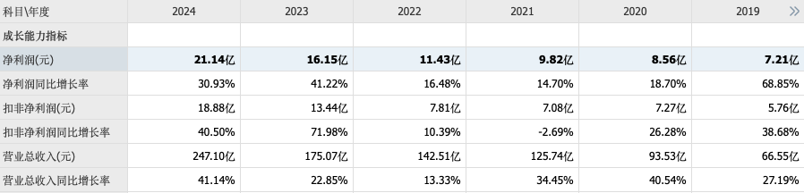 从业绩角度来看,安克创新过去5年营业收入翻了1.64倍,从2020年的93.53亿元增长超153亿元至2024年的247.1亿元;净利润在2020年仅为8.56亿元,到了2024年变为21.14亿元。