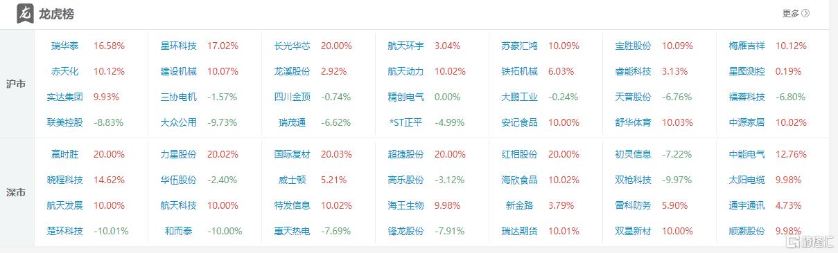 焦点股方面,福建板块延续强势,合富中国30天16板、实达集团13天8板、安记食品5连板,商业航天概念继续活跃,顺灏股份7天6板、通宇通讯8天5板。