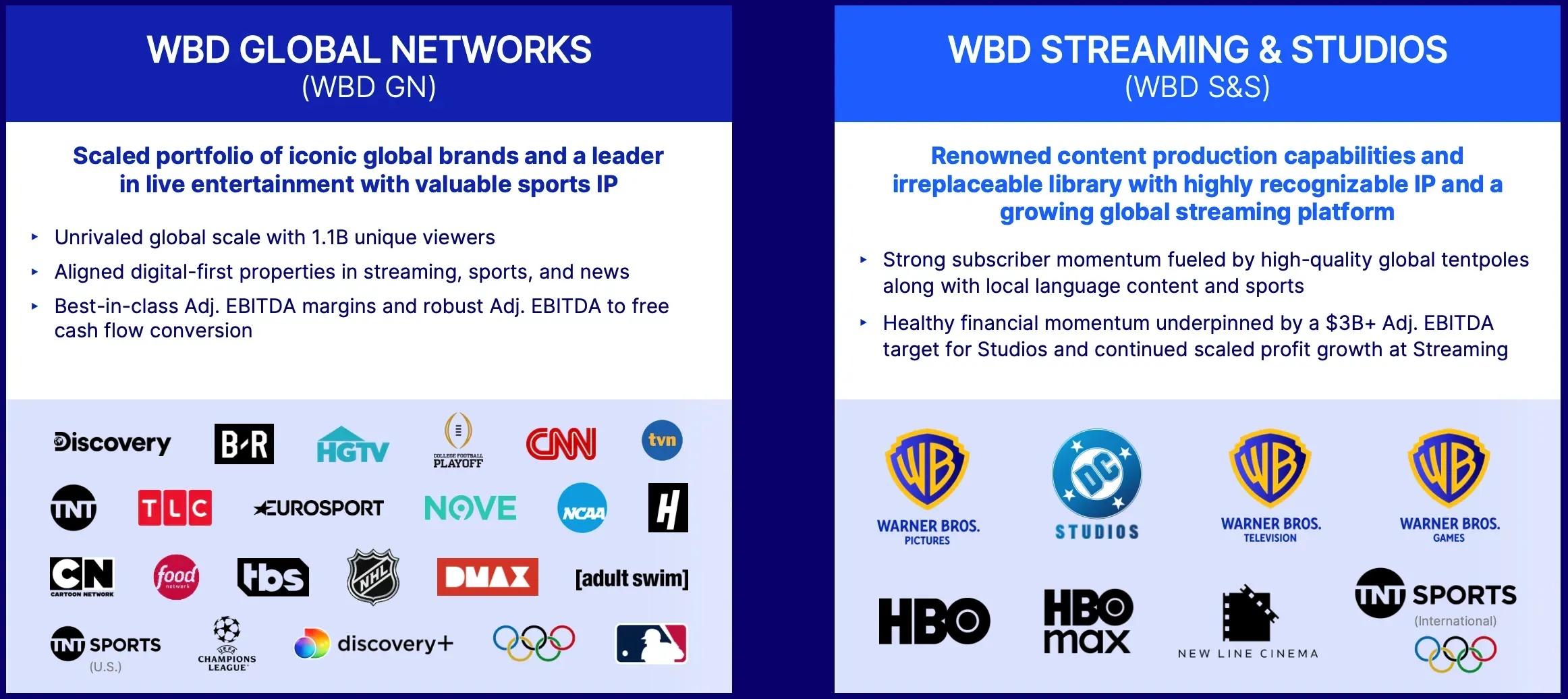 WBD 在今年 6 月宣布将集团分拆为 WBD Streaming&Studios 和 WBD Global Networks,也就是说 Netlifx 相当于买的是 Streaming & Studios。注意,WBD 旗下的体育内容归属于 Global Networks 里面,因此 Netflix 买下的资产中不包含体育 IP(美国地区 TNT Sports 等)。
