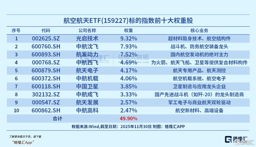 资金坚定抄底航空航天ETF(159227)或正得益于该ETF标的指数国证航天高度契合“空天一体”的战略方向,指数聚焦军工空中力量,与商业航天概念重合度高达57.94%,如中国卫星、航天电子等前十大权重股均深度参与到卫星制造、卫星测控等商业航天关键环节,光启技术的隐身材料、中航高科的复合材料等技术也可应用于卫星、运载火箭的轻量化、高性能制造环节。