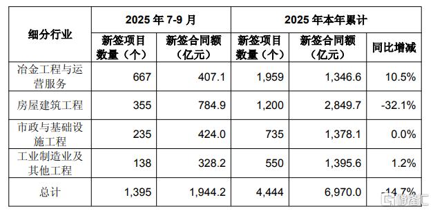 细分行业来看,冶金工程与运营服务同比增10.5%,房屋建筑工程同比下降了32.1%。