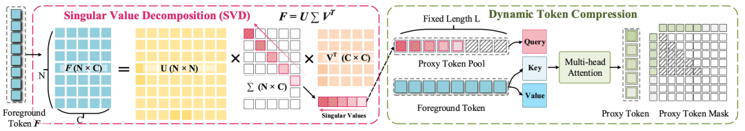 2. SVD 指导,实现「动态」压缩:IB-DTC 最精妙的设计在于其动态性。它没有使用一个固定的、「一刀切」的压缩率,而是利用在线奇异值分解 (SVD) ,在推理时(on-the-fly)实时分析当前输入前景数据的「内在秩 (intrinsic rank)」。这意味着: