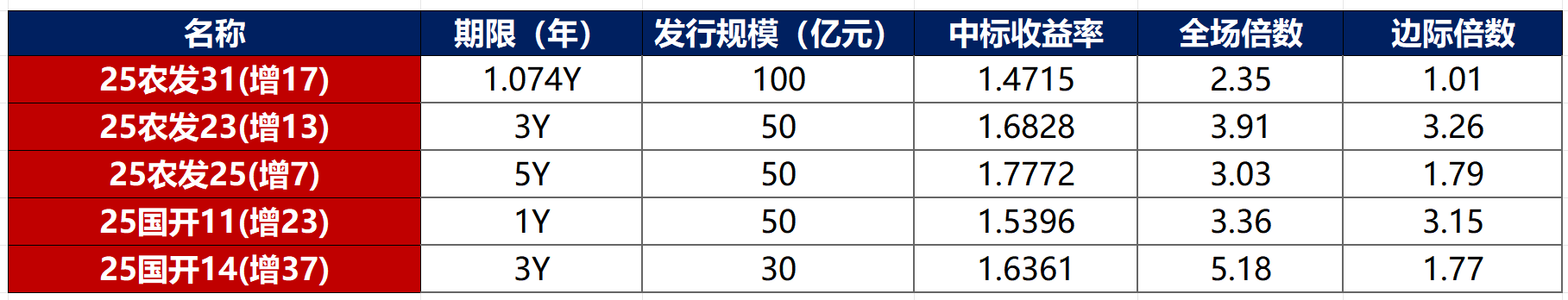债券招标情况