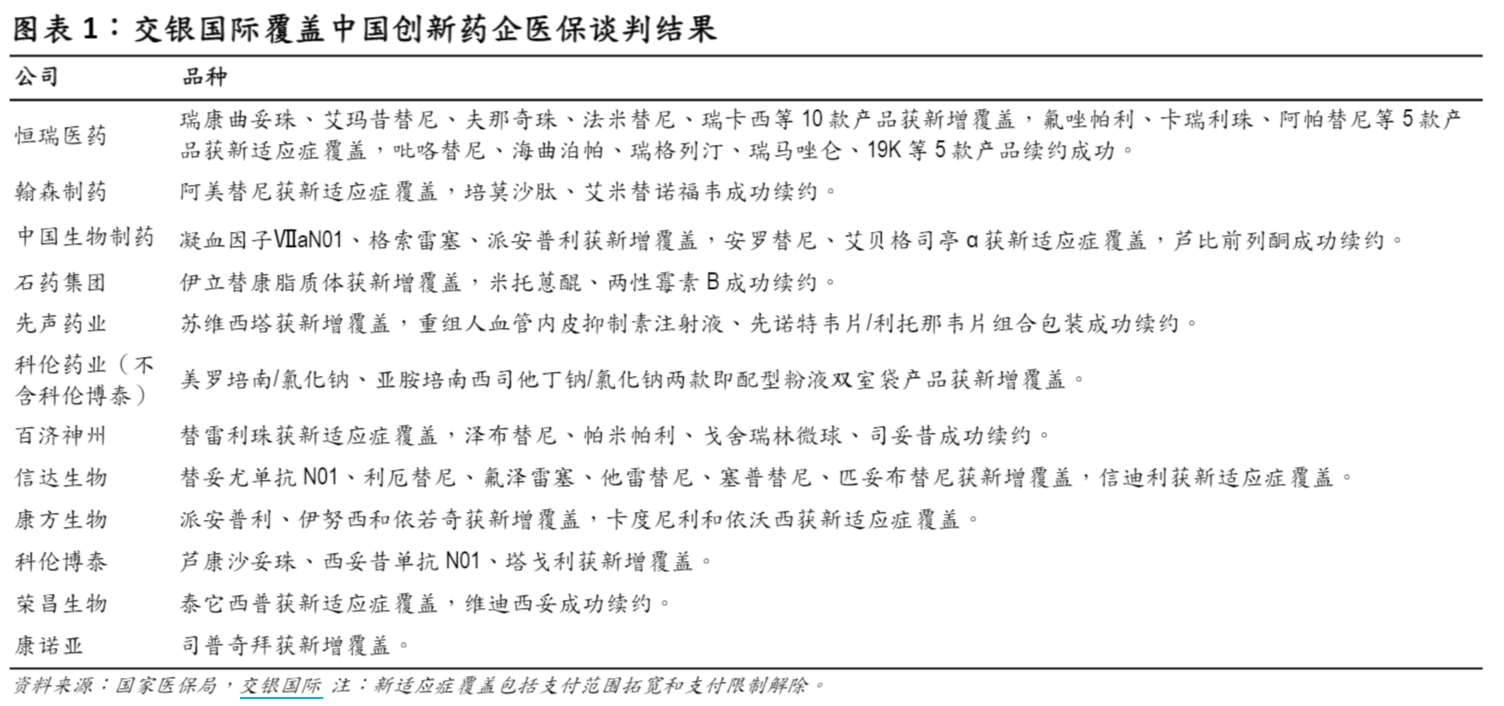 交银国际认为,更多新药进入目录,有助提升临床用药水平以及创新药行业整体研发回报率。同时,商保资金的引入将为创新药支付带来重要增量资金,未来商业健康险有望与基本医保错位发展,为多元化支付体系的建立奠定基础。