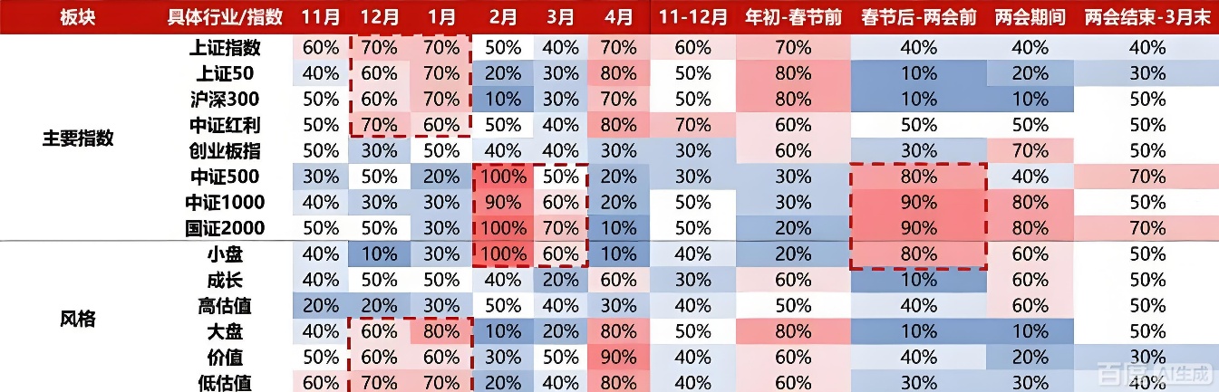 回顾历史,岁末年初的A股市场往往会受到日历效应的推动,展开一轮跨年行情。然而,这段时期的风格切换也颇为频繁。考虑到今年市场热点相对集中,部分热门赛道累积了可观的涨幅,获利盘兑现压力不容忽视。因此,在年末阶段积极参与市场博弈,其不确定性或将显著提升。