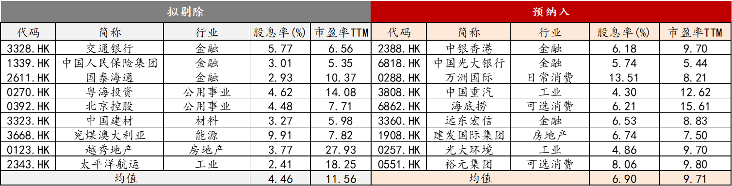 2、本次调仓后有助于指数精准筛选高股息标的,巩固指数核心红利属性。从股息率表现来,拟剔除的成分股近12个月股息率平均水平为4.46%,低于预纳入成分股6.9%的股息率。