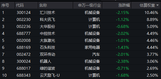 【机器人ETF基金(159213)标的指数前十大成分股】