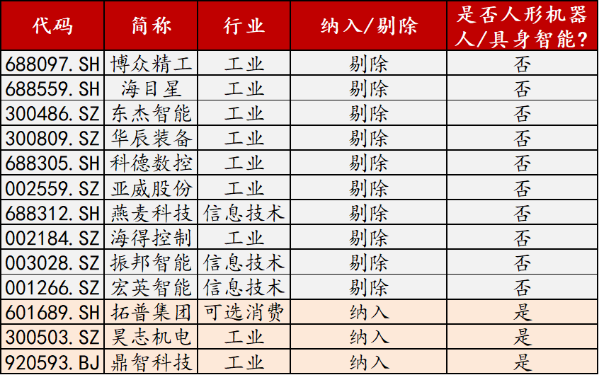 本次调整后,机器人ETF基金(159213)指数或将更聚焦于未来科技高地“人形机器人/具身智能”板块!拟纳入的成分股100%含有人形机器人或具身智能概念,而拟剔除的10只个股中仅1只含有人形机器人或具身智能概念。此外,预纳入的拓普集团是人形机器人中价值量最高、技术难度最大的核心部件——执行器的标杆企业,具备规模化量产能力、与特斯拉深度绑定,是机器人板块的灵魂标的!本次调仓后,机器人ETF基金(159213)指数更能反映机器人产业发展趋势和重点。