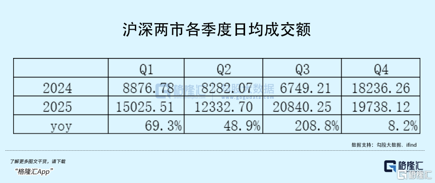 下表是沪深两市每个季度的日均成交额(25Q4是截至到12月8日的日均成交额),可以看到,基数效应下,确实25年四季度的业绩会相对一般。虽然说券商这个估值水平,对增速本来就应该没啥要求了,但它确实会影响到市场的选择。所以三季度后券商没有行情了,符合市场边际选择法。