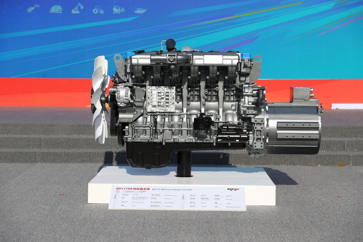 全新WP17T甲醇增程动力产品,最大功率可达650Ps,最大扭矩2900N·m。作为行业内唯一可实现长时间无故障稳定运行的甲醇动力机型,该产品依托增程器发电效率最优解设计与整车智能化控制策略,实现燃油经济性的跨越式提升,每年可帮助客户节省燃料成本近60万元,为行业绿色低碳转型提供高性价比解决方案。