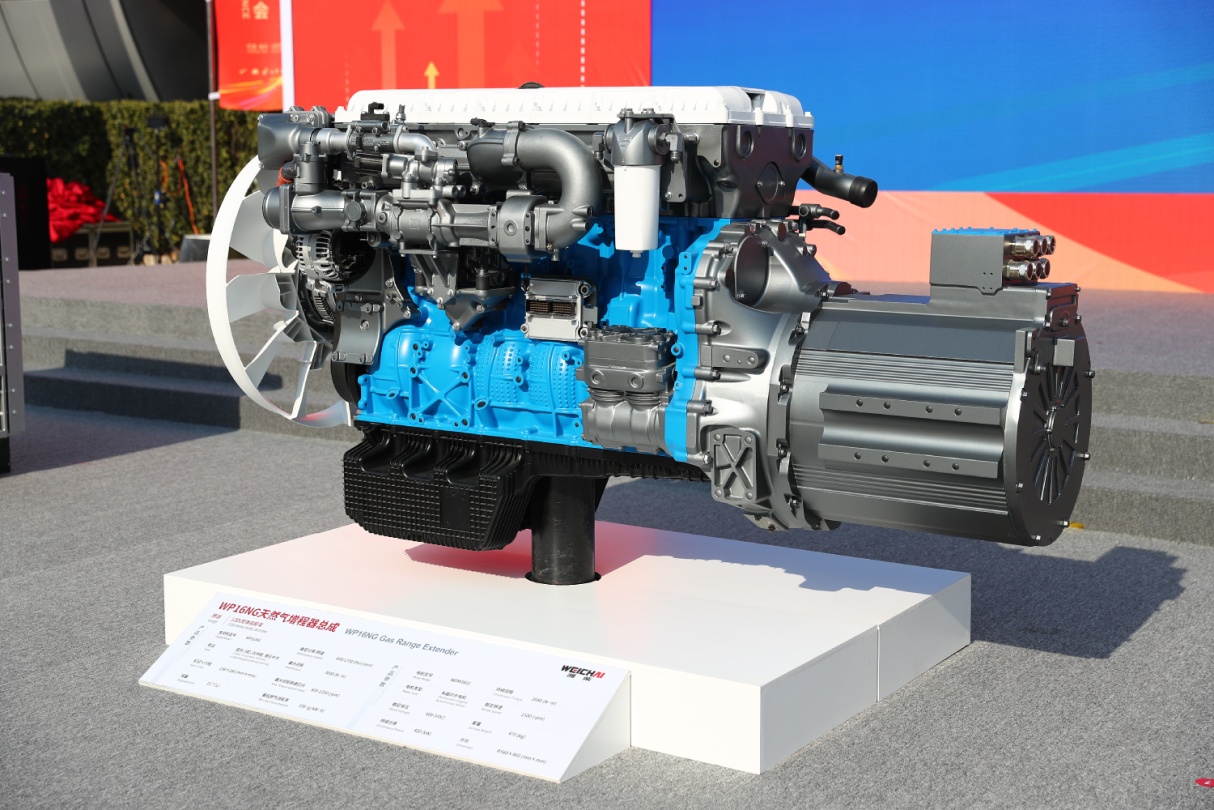 WP16NG天然气增程新产品,最大功率680Ps,最大扭矩3000N·m。该产品全面集成高效串联冷却、高能点火、高精度爆震控制等前沿技术,并搭载潍柴独有的棚顶燃烧室设计,凭借多重核心技术加持、超强动力性能,实现细分领域的全面引领。